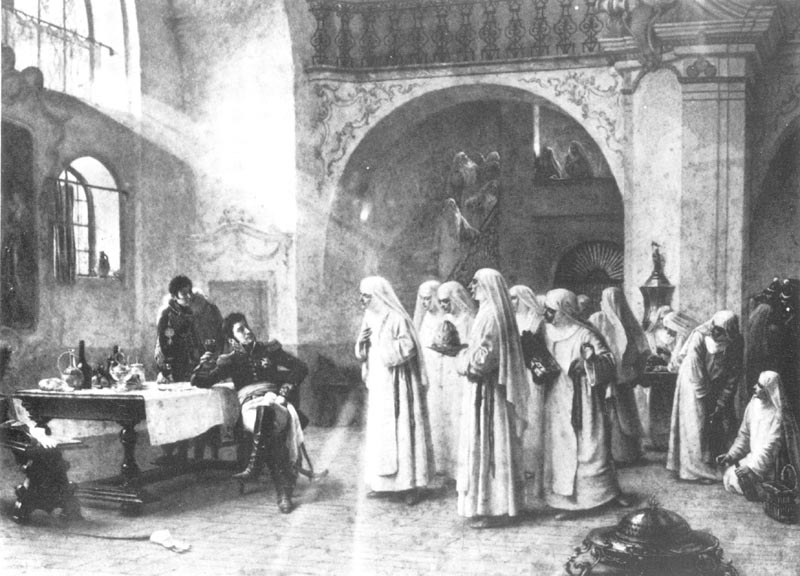 Le maréchal Lannes au couvent des soeurs anglaises à Saint-Polten. Photgravure d'après un tableau de Dawant.